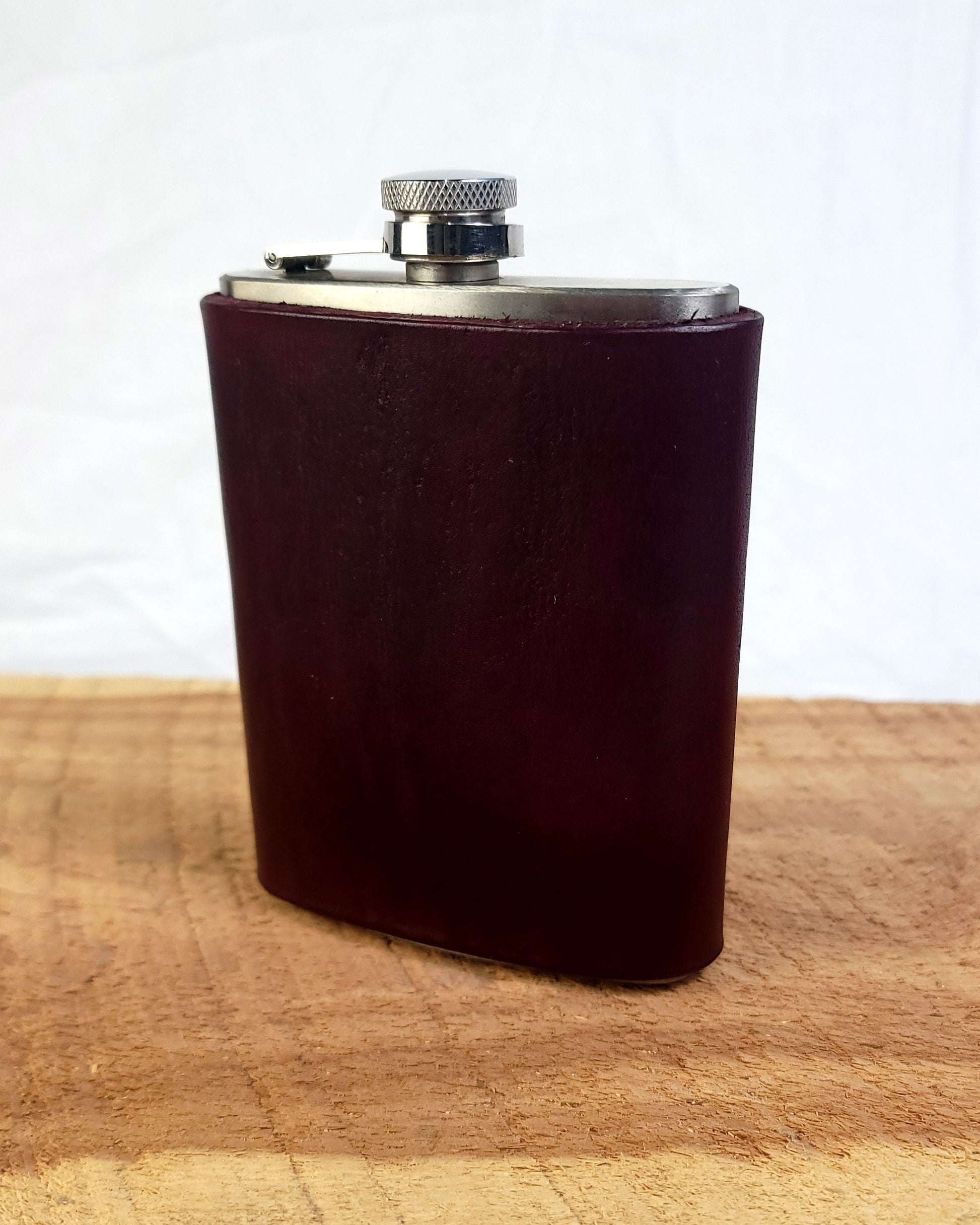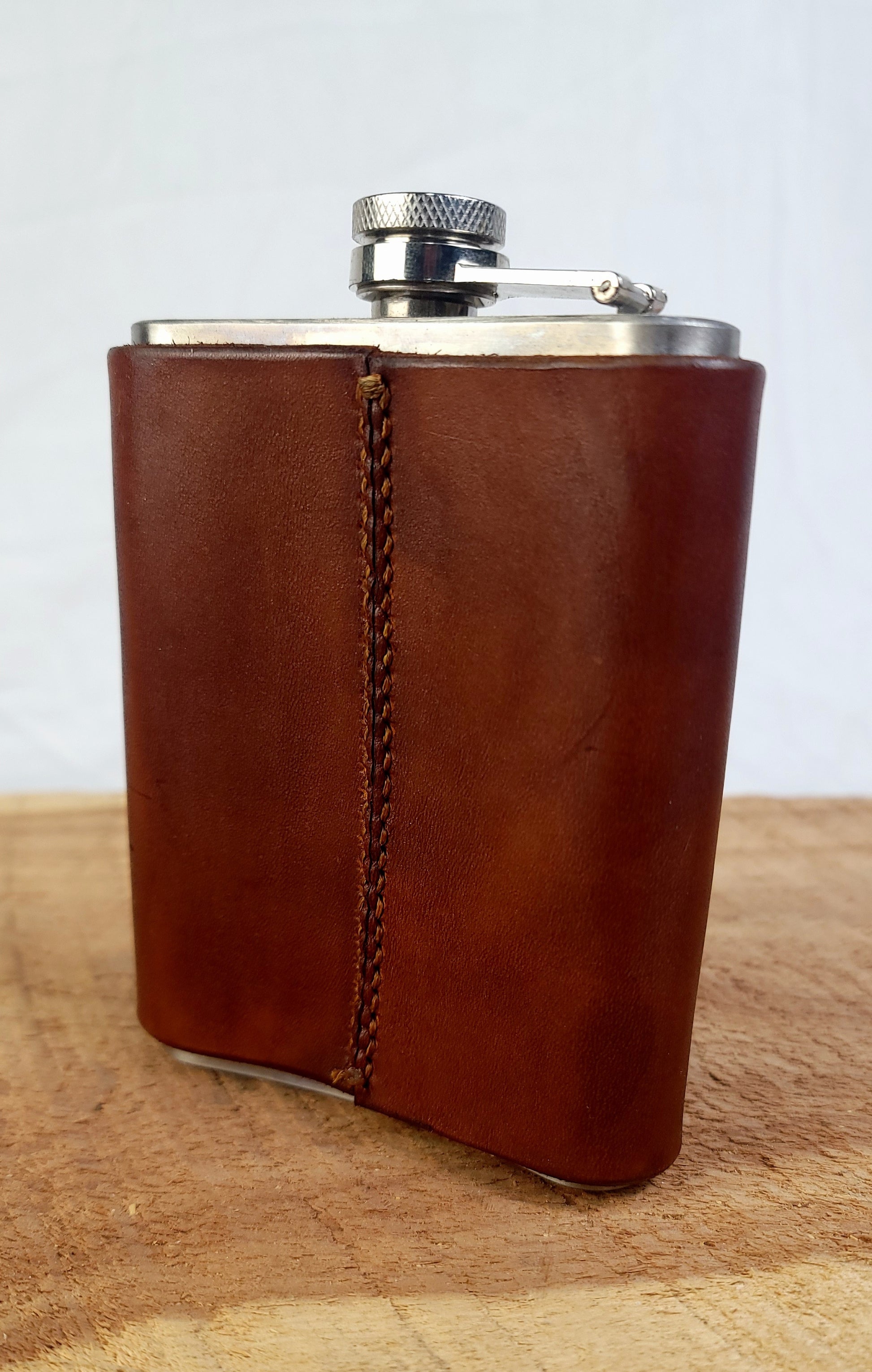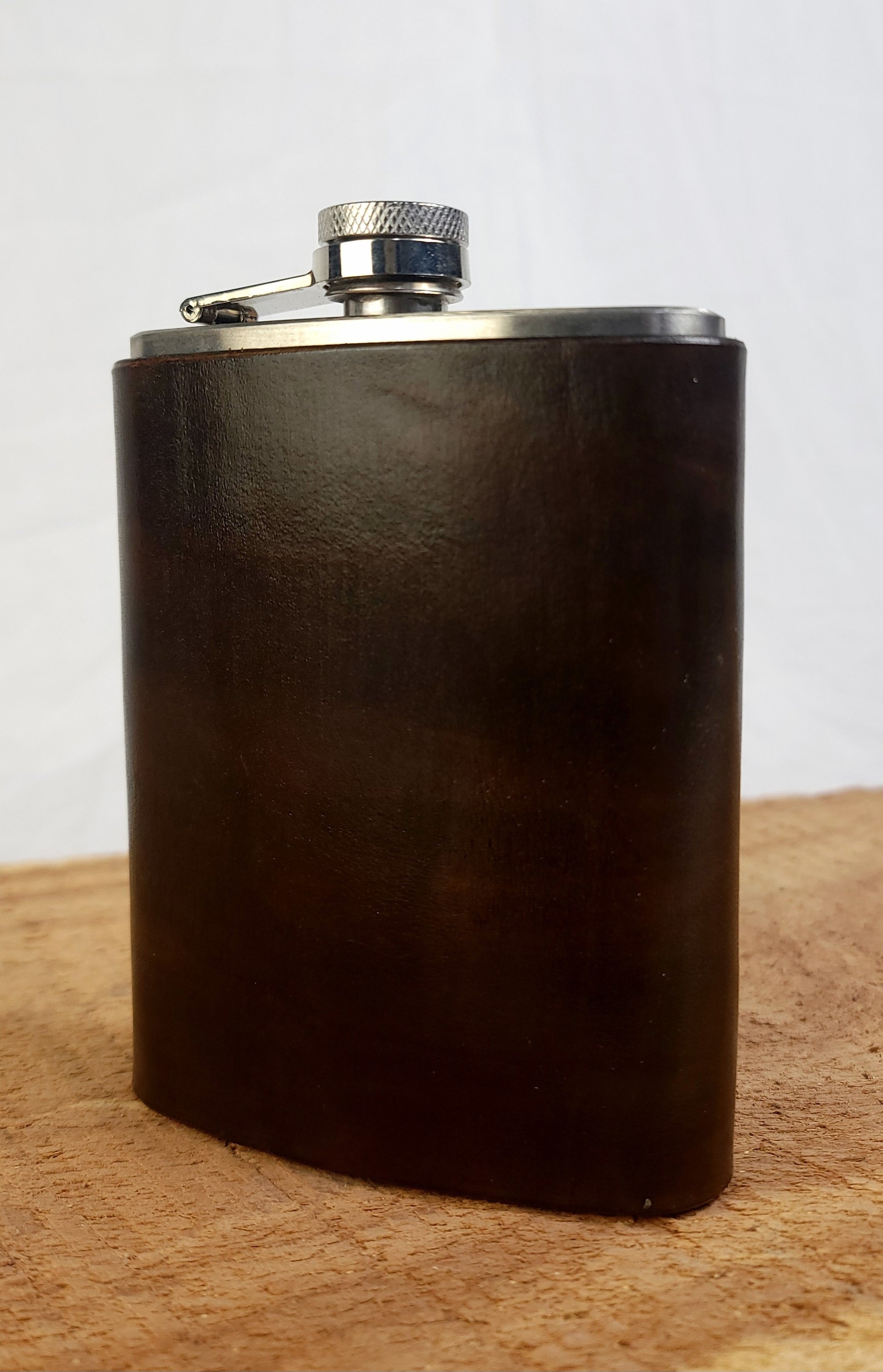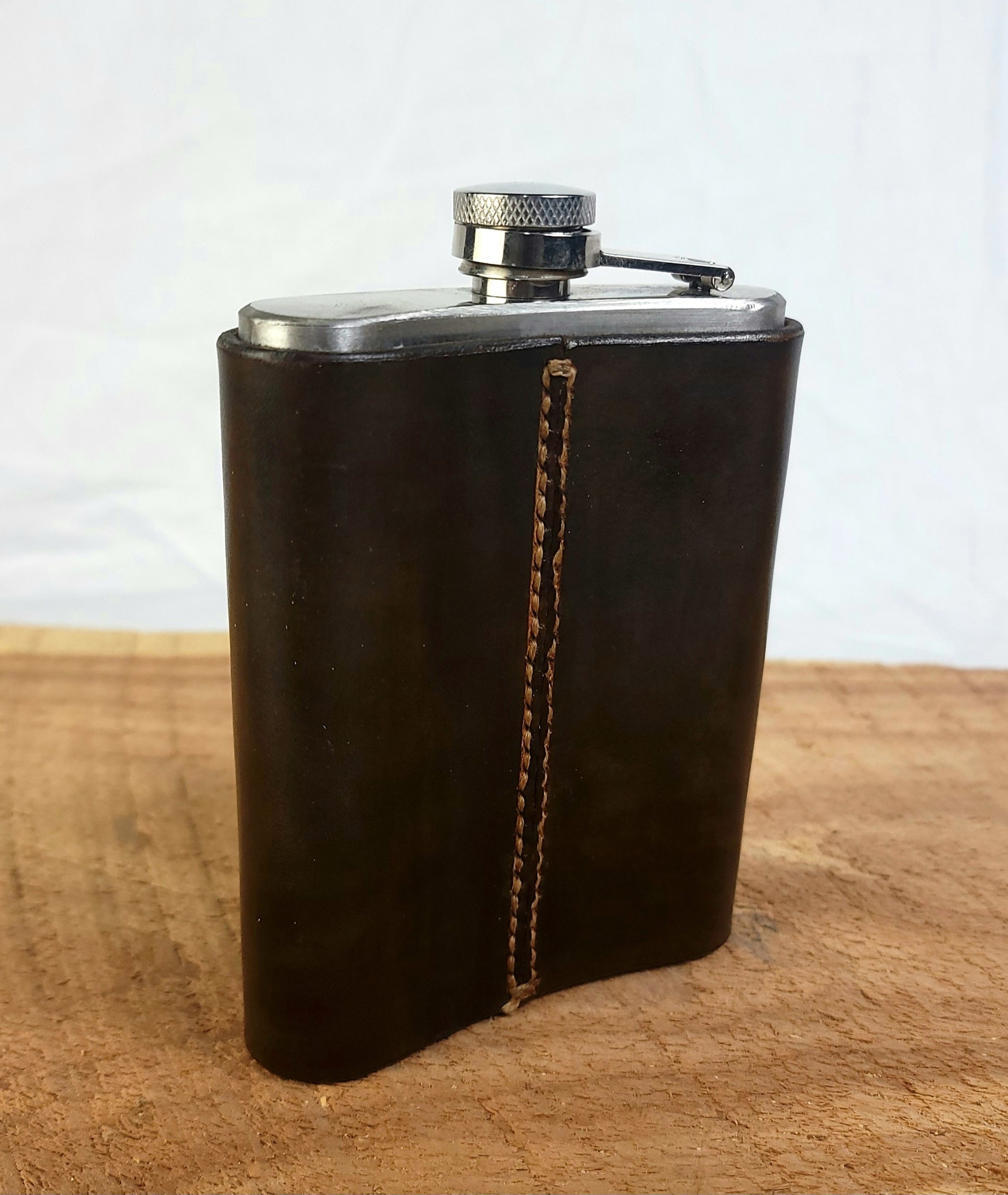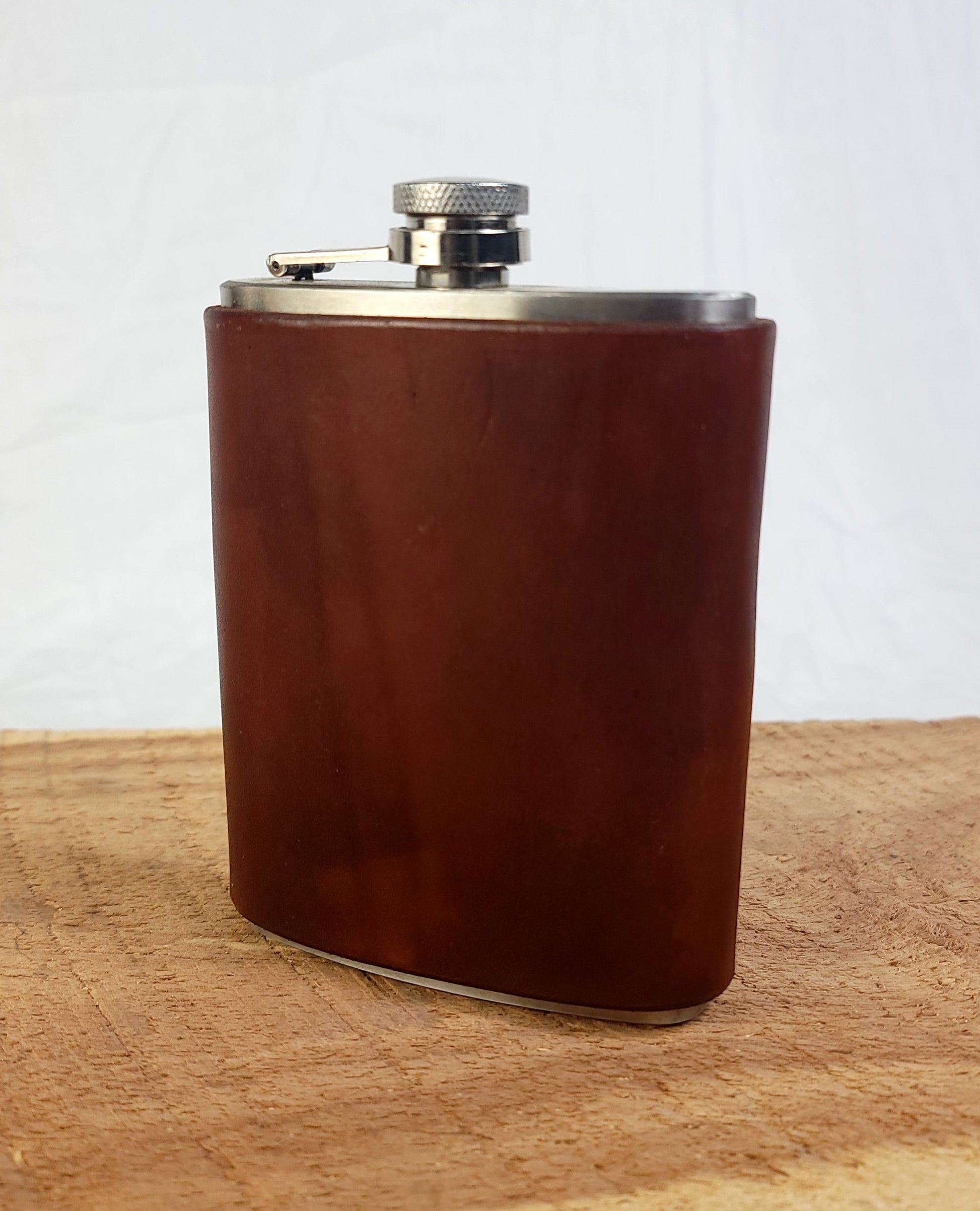Indulge in luxury with our leather-bound flask! Perfect for any occasion, this elegant flask is made with high-quality leather for a touch of sophistication. Enjoy your favorite drink on the go and make a statement with this stylish accessory. Stay classy and hydrated with our leather-bound flask.
